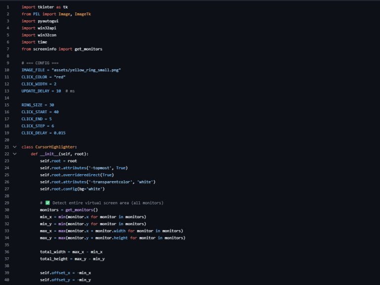 Lightweight Windows overlay that improves cursor visibility during screen recordings, with a clear highlight and click indicator.