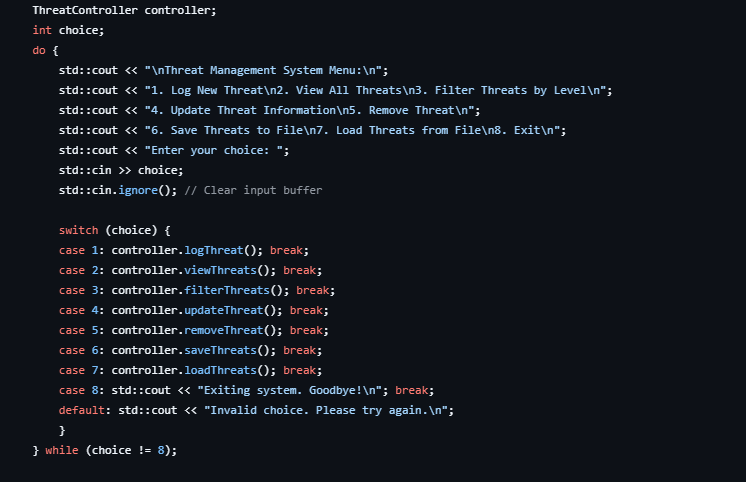 Menu-driven console app that simulates basic threat tracking. Create, view, update, filter, and save entries. Built for learning and portfolio use.